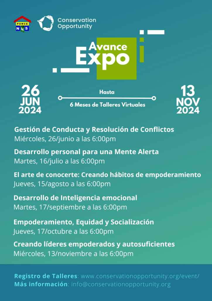 Save the date and participate in Avance Expo 2024! This year we will have the participation of Ponce Neighborhood Housing Services Inc. who will offer unique and in-demand workshops in the professional world.
