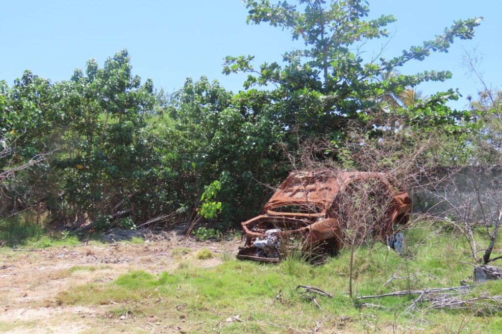 Debris from a burned vehicle in Punta Cucharas, Ponce